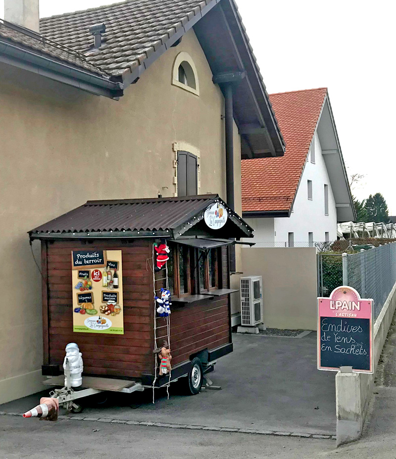 Nous proposons en libre service divers produits artisanaux de la ferme dans notre charmant chalet au Petit-Eysins.